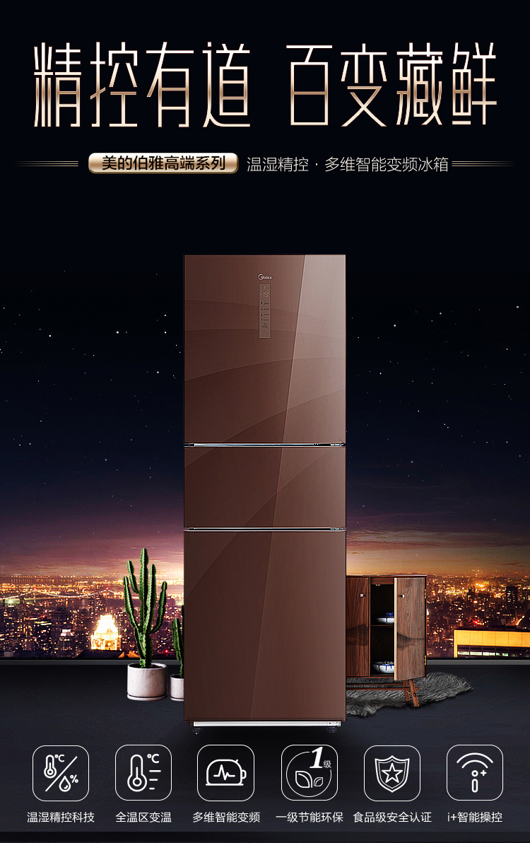 商品名稱:美(měi)的(de)冰箱 BCD-259WTGPZM(E)伯爵咖